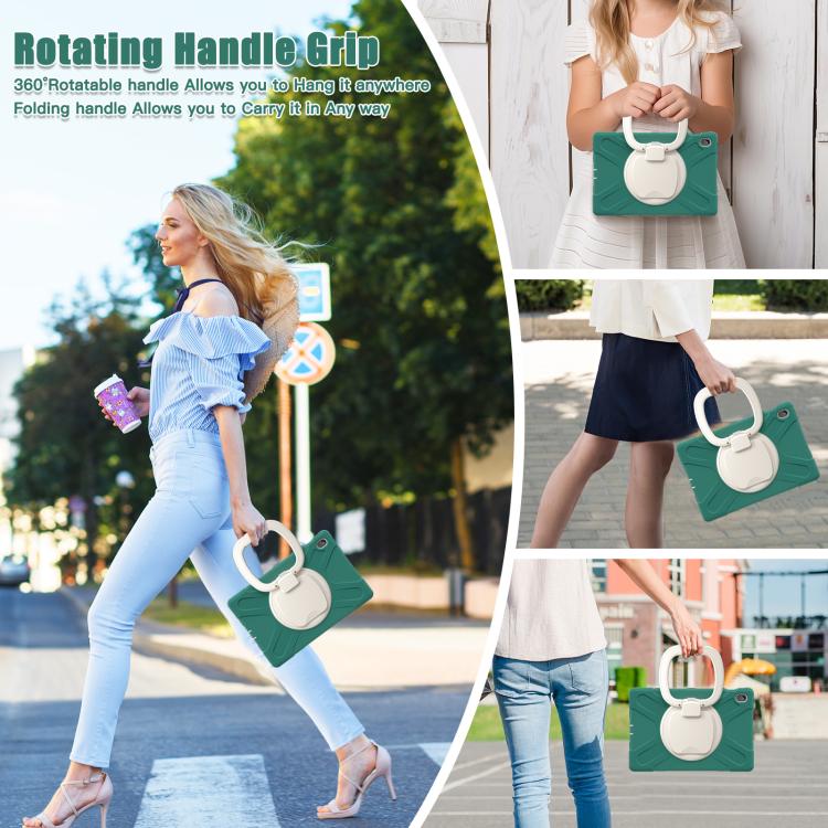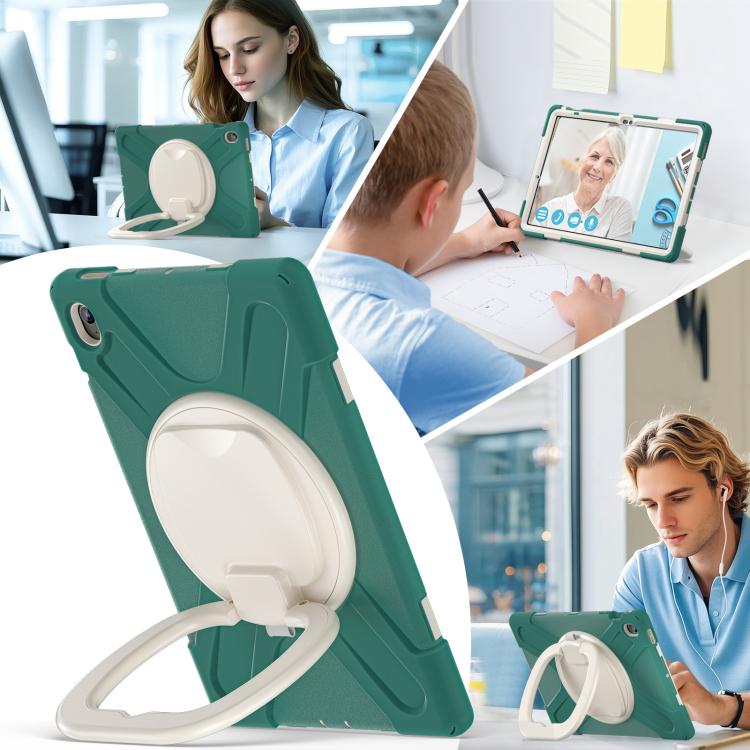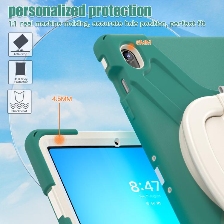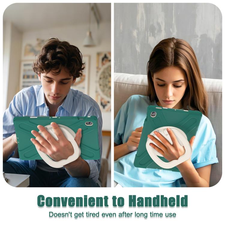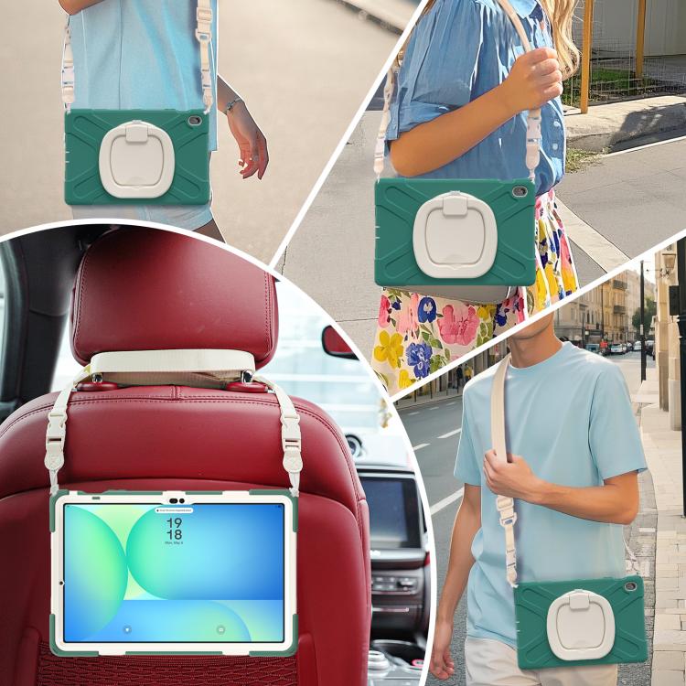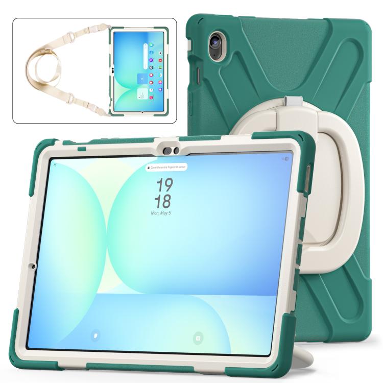 For Samsung Galaxy Tab S10 FE+ Silicone Hybrid PC Tablet Case with Holder & Shoulder Strap(Emerald Green)