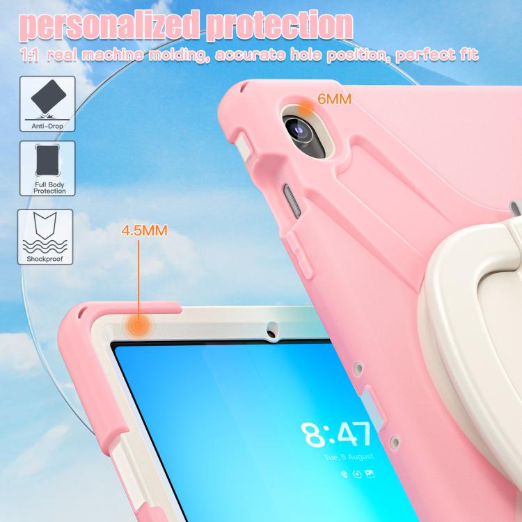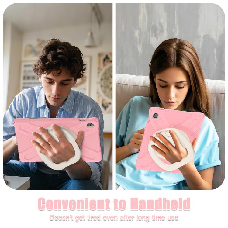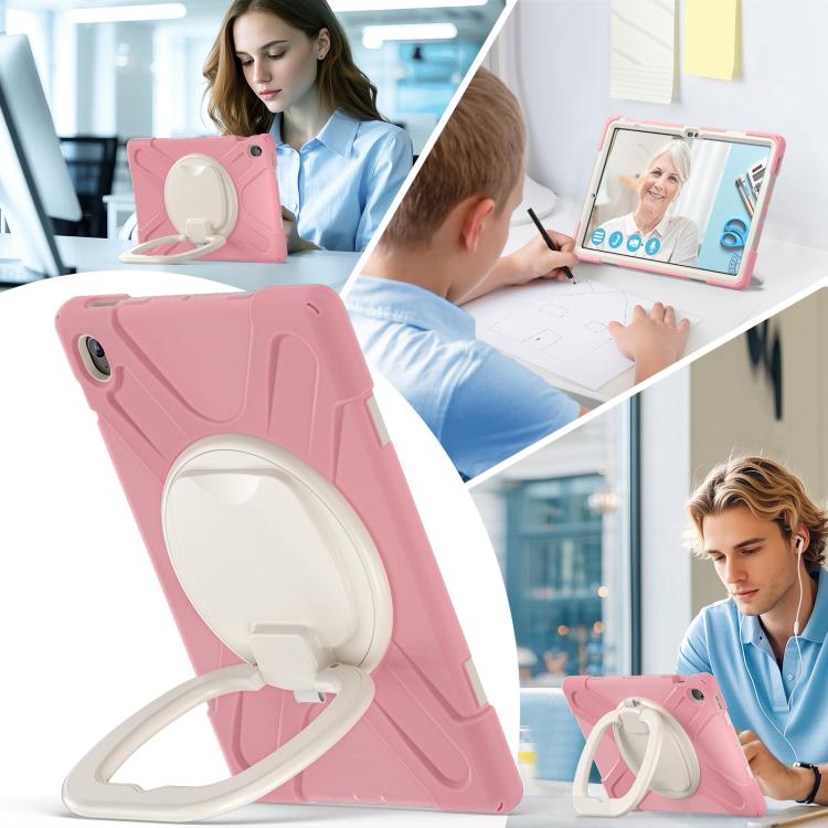 For Samsung Galaxy Tab S10 FE+ Silicone Hybrid PC Tablet Case with Holder & Shoulder Strap(Pink)