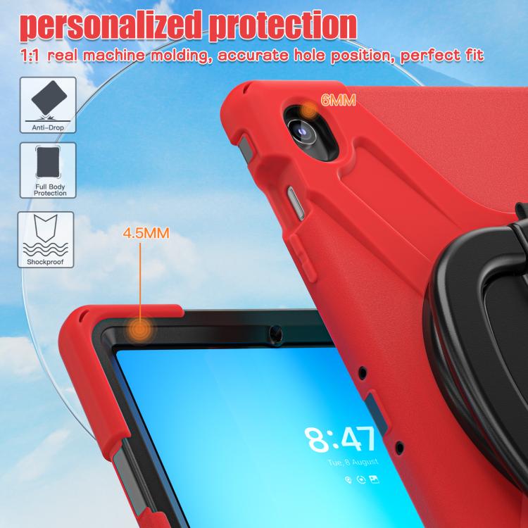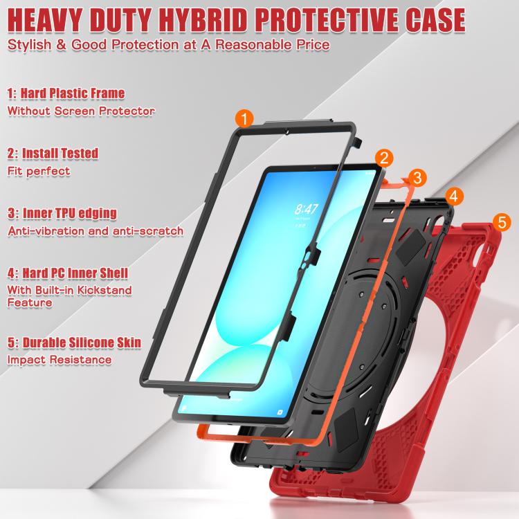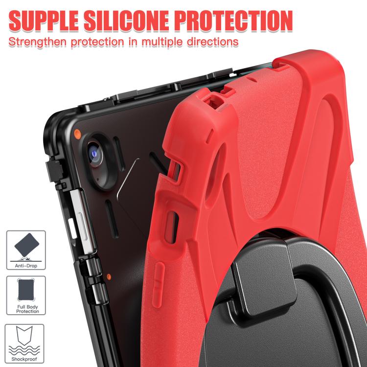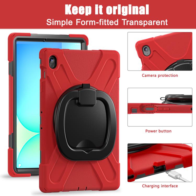 For Samsung Galaxy Tab S10 FE+ Silicone Hybrid PC Tablet Case with Holder & Shoulder Strap(Red)