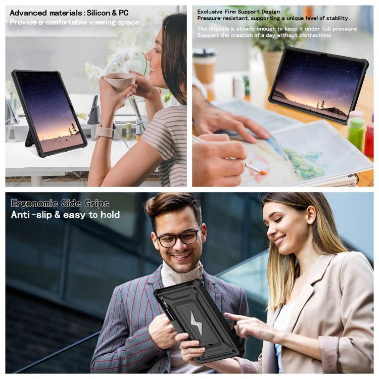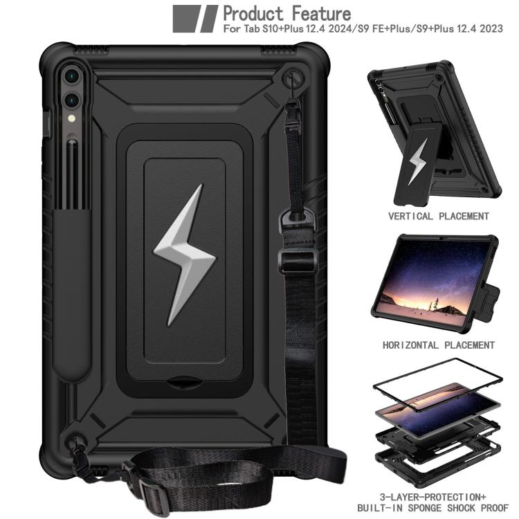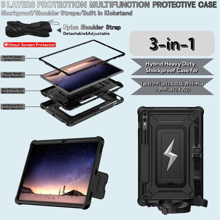 For Samsung Galaxy Tab S10+ / S9+ Armor Bolt Shape Holder Silicone Hybrid PC Tablet Case(Black)