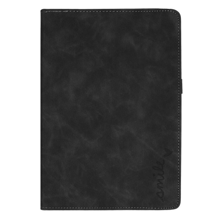 For Samsung Galaxy Tab S10+ / S9 FE+ Smile Embossed Rotation Holder Leather Smart Tablet Case(Black)