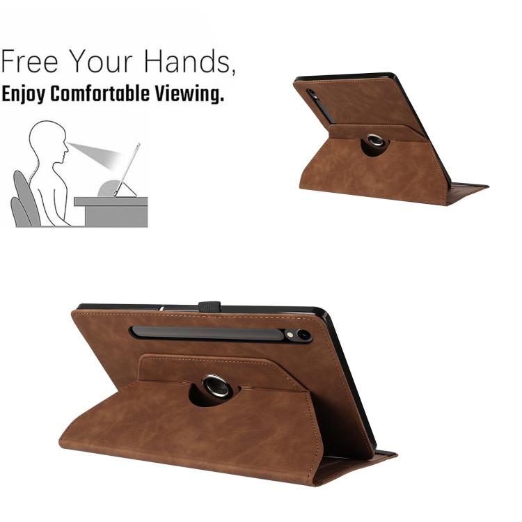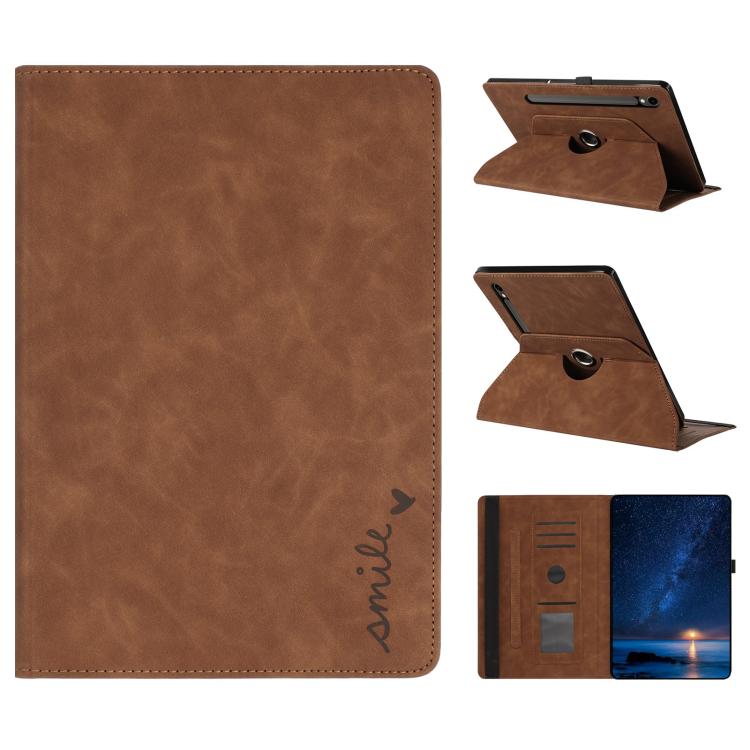 For Samsung Galaxy Tab S10+ / S9 FE+ Smile Embossed Rotation Holder Leather Smart Tablet Case(Brown)