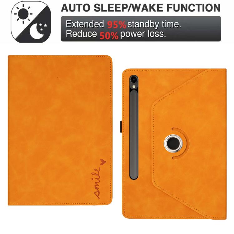 For Samsung Galaxy Tab S10+ / S9 FE+ Smile Embossed Rotation Holder Leather Smart Tablet Case(Khaki)