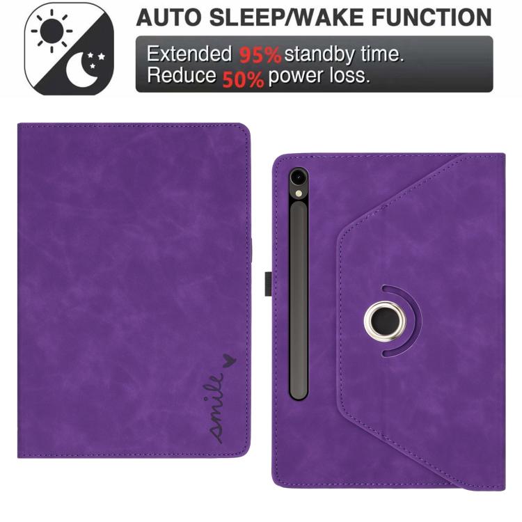 For Samsung Galaxy Tab S10+ / S9 FE+ Smile Embossed Rotation Holder Leather Smart Tablet Case(Purple)