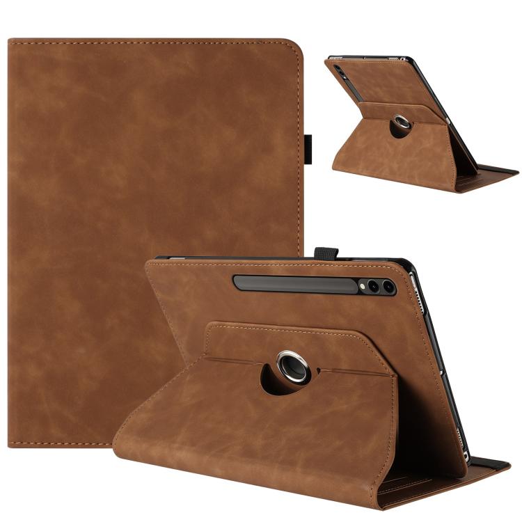 For Samsung Galaxy Tab S10+ / S9 FE+ Solid Color Rotation Holder Leather Smart Tablet Case(Brown)