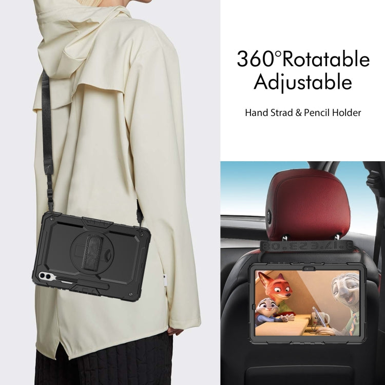 For Samsung Galaxy Tab S10+ / S9+ / S9 FE+ Lucky Wheel Grip Silicone Hybrid PC Tablet Case with Shoulder Strap(Black)