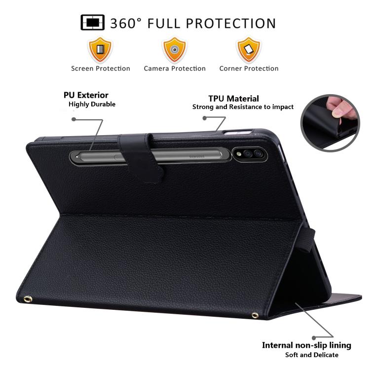 For Samsung Galaxy Tab S10 Ultra / S11 Ultra Cat Skin-feel Litchi Leather Tablet Case(Black)