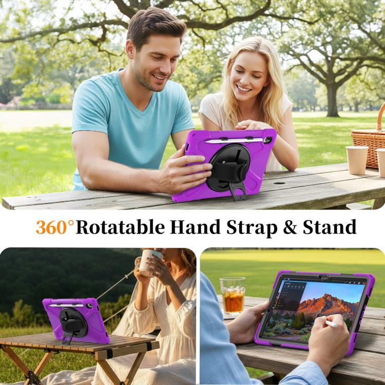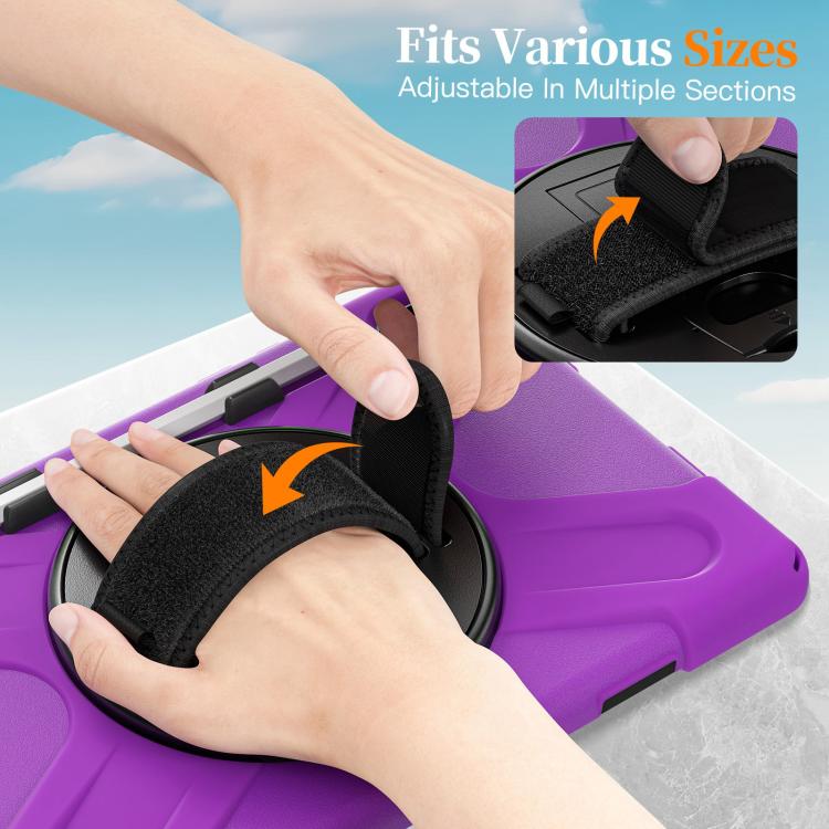 For Samsung Galaxy Tab S11 2025 Rotatable Holder Silicone Hybrid PC Tablet Case with Shoulder Strap(Purple)
