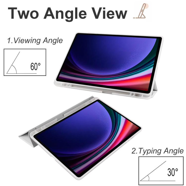 For Samsung Galaxy Tab S11 3-folding Transparent TPU Smart Leather Tablet Case with Pen Slot(Grey)