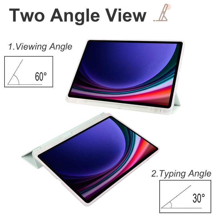 For Samsung Galaxy Tab S11 3-folding Transparent TPU Smart Leather Tablet Case with Pen Slot(Light Green)