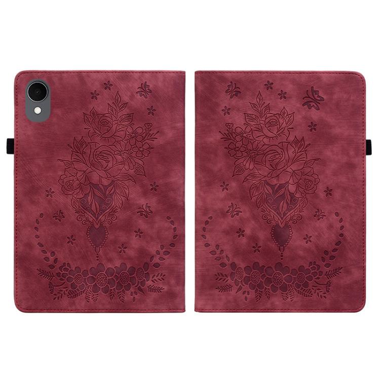 For Samsung Galaxy Tab S11 Butterfly Rose Embossed Leather Tablet Case(Red)
