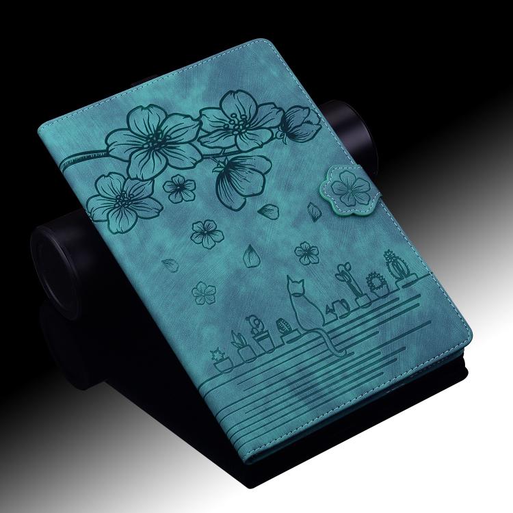 For Samsung Galaxy Tab S11 Cartoon Sakura Cat Embossed Smart Leather Tablet Case(Green)