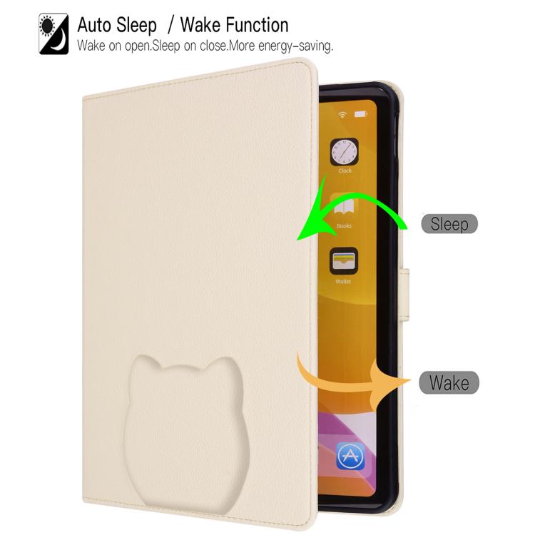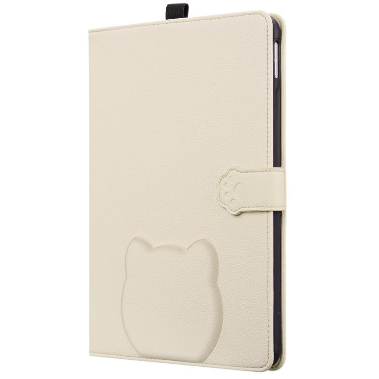 For Samsung Galaxy Tab S11 Cat Skin-feel Litchi Leather Smart Tablet Case(Apricot White)