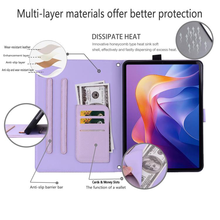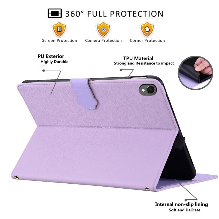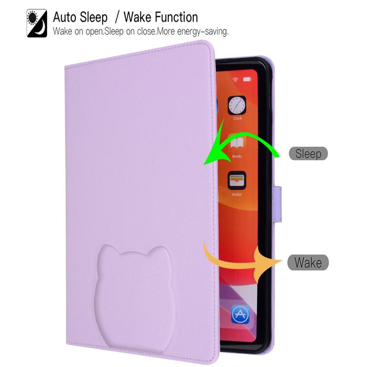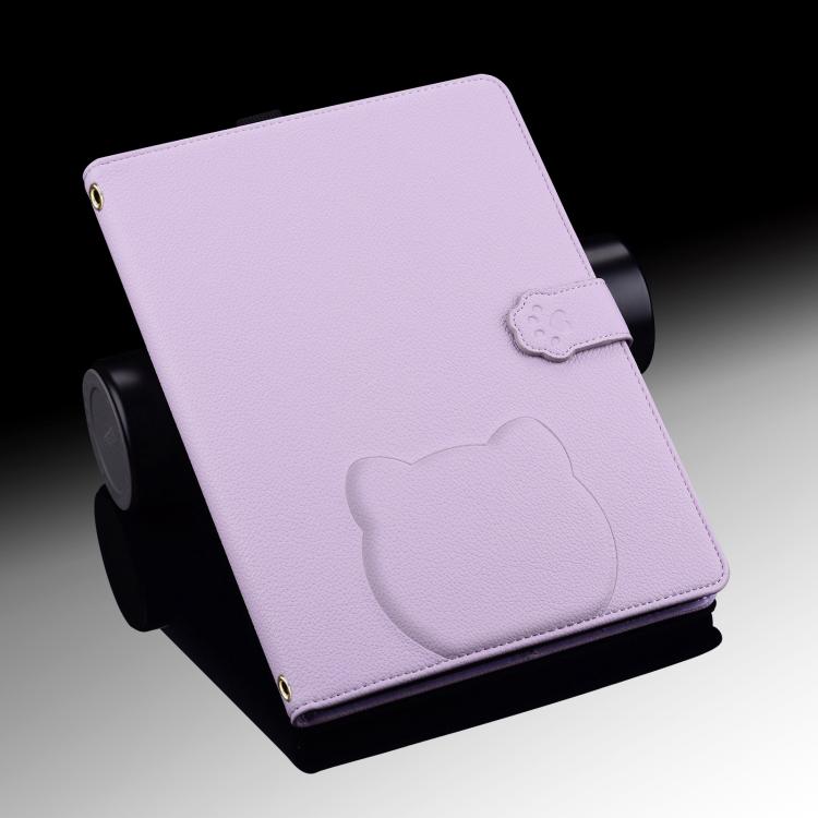 For Samsung Galaxy Tab S11 Cat Skin-feel Litchi Leather Smart Tablet Case(Purple)
