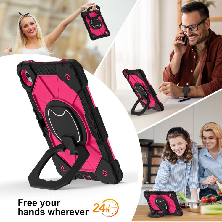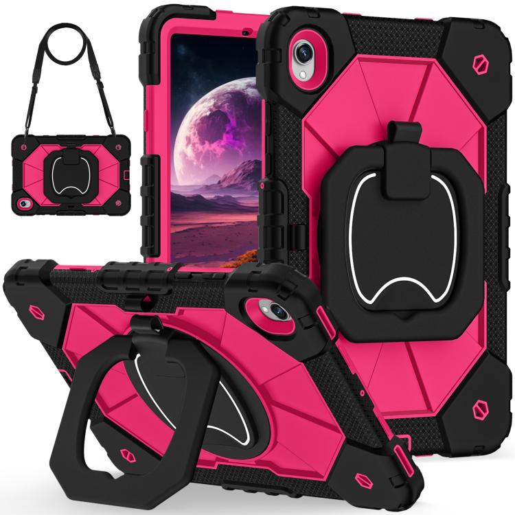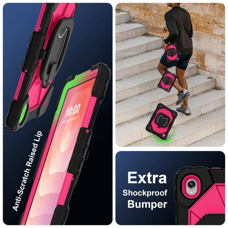 For Samsung Galaxy Tab S11 Contrast Color Robot Silicone Hybrid PC Tablet Case(Black Rose Red)