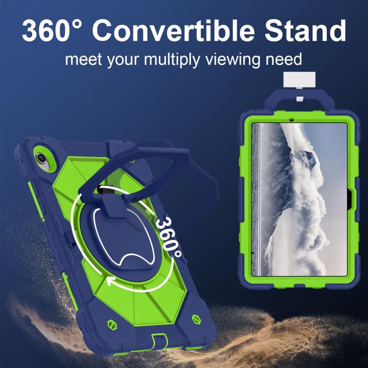 For Samsung Galaxy Tab S11 Contrast Color Robot Silicone Hybrid PC Tablet Case(Navy Yellow Green)