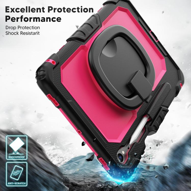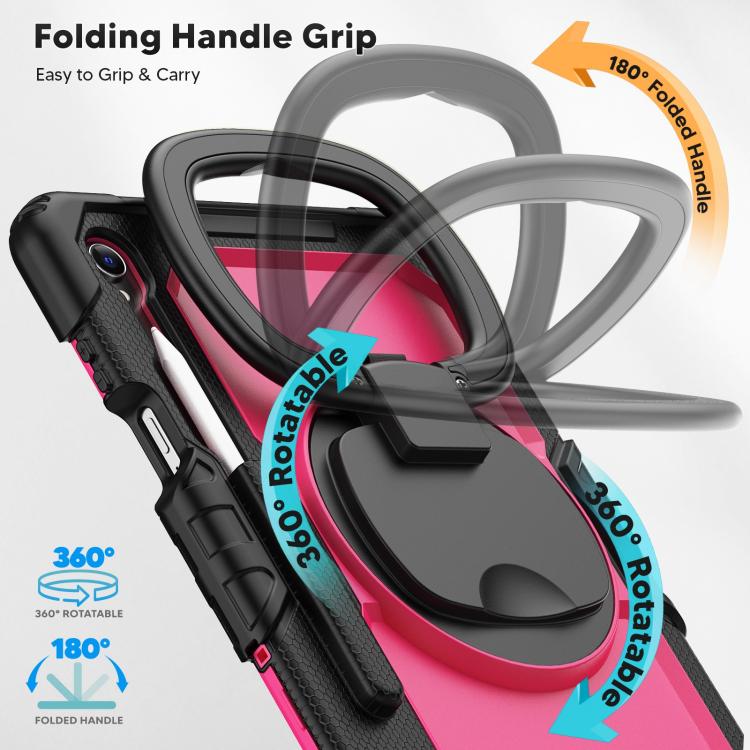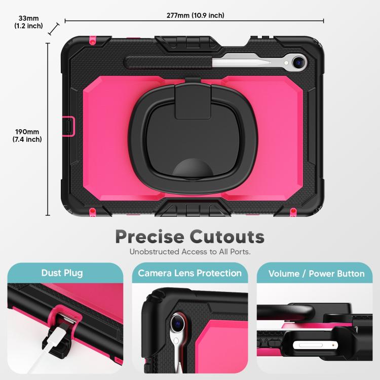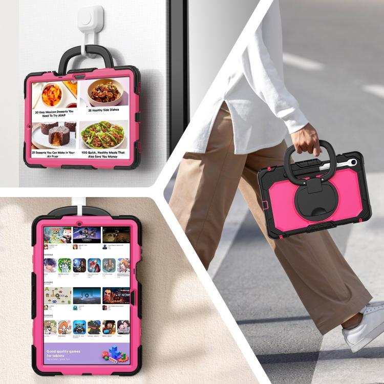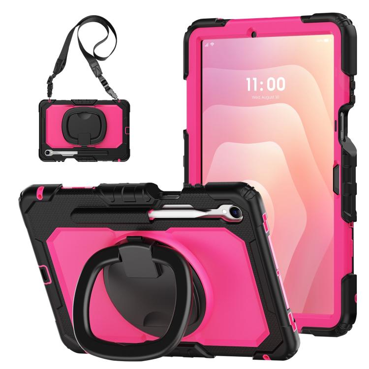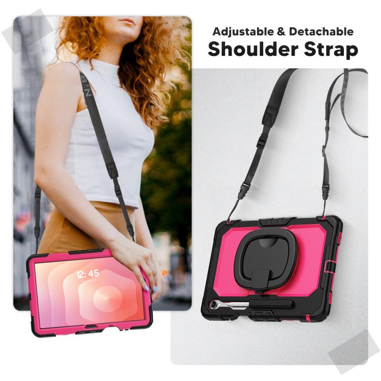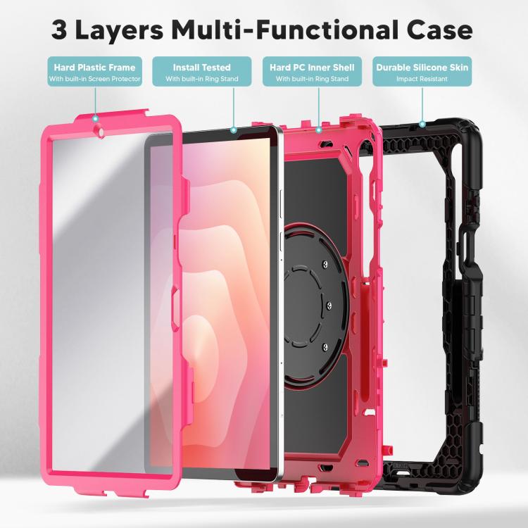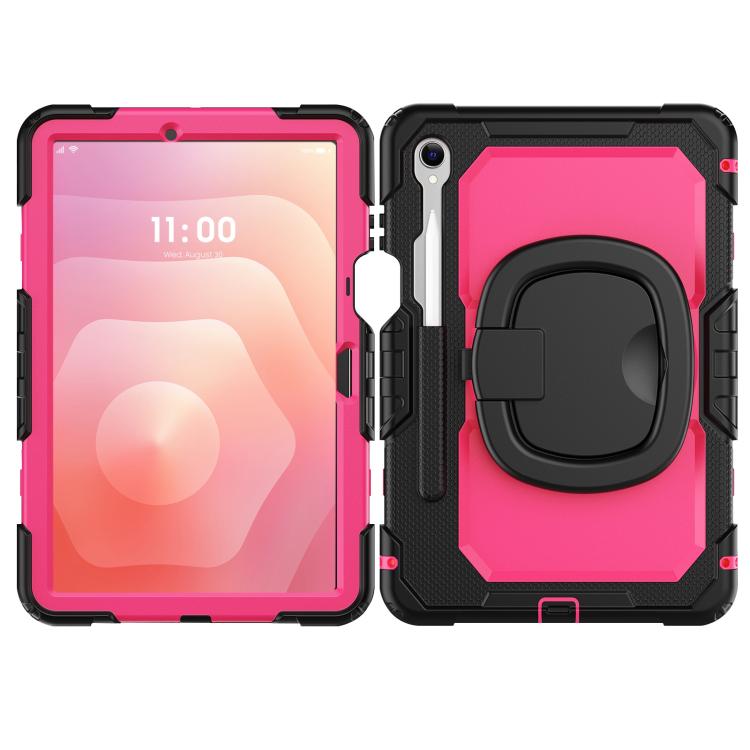 For Samsung Galaxy Tab S11 D Type Silicone Hybrid PC Tablet Case with Handle Holder(Rose Red PC)