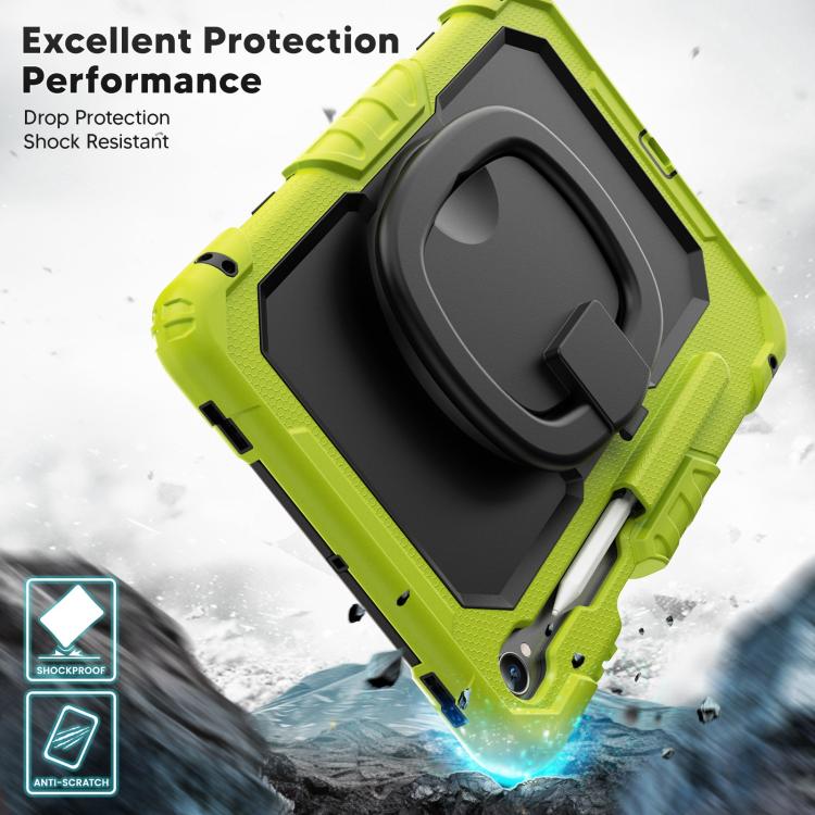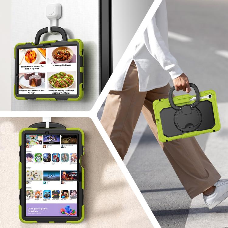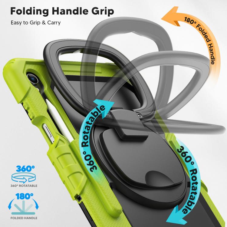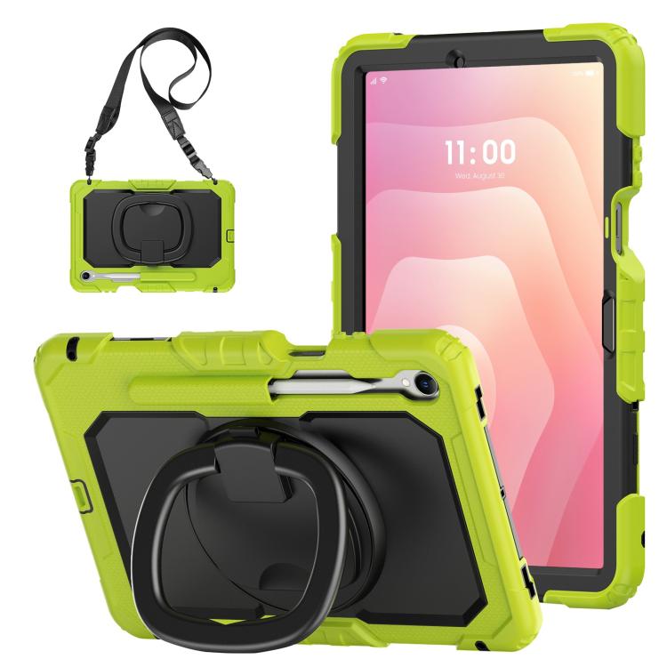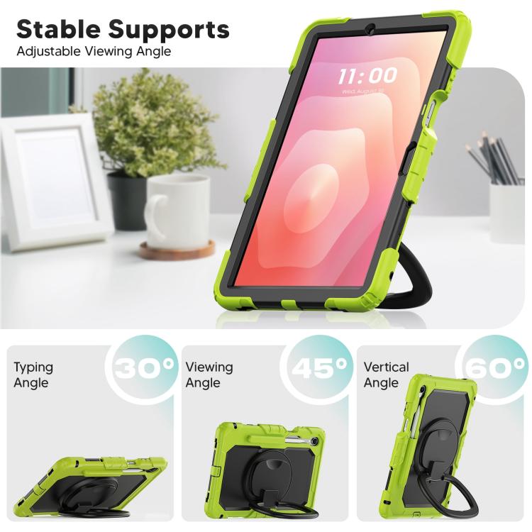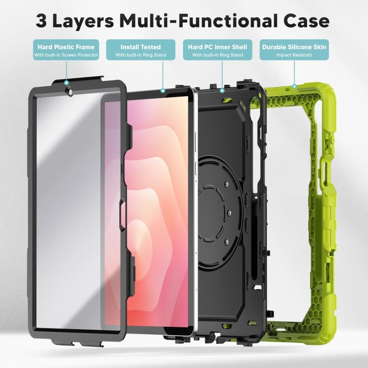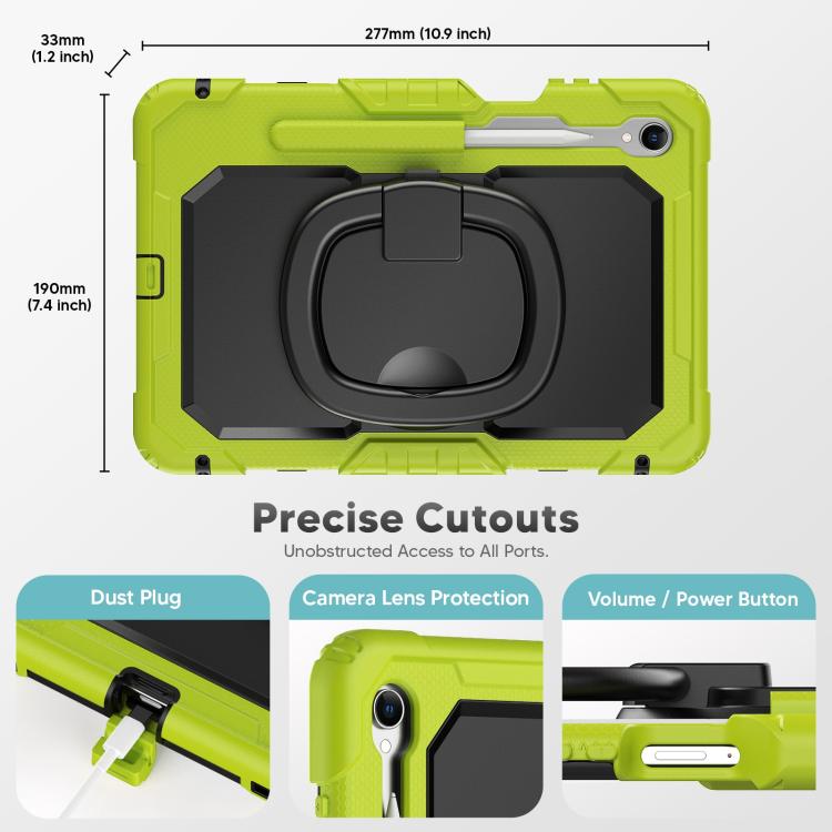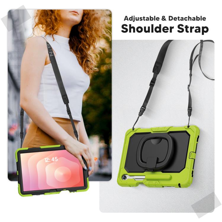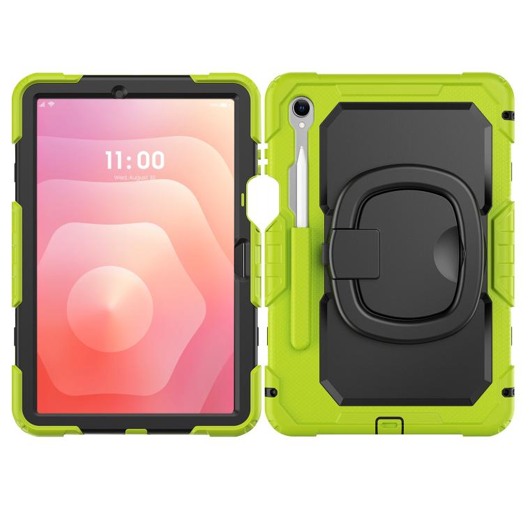 For Samsung Galaxy Tab S11 D Type Silicone Hybrid PC Tablet Case with Handle Holder(Yellow Green)