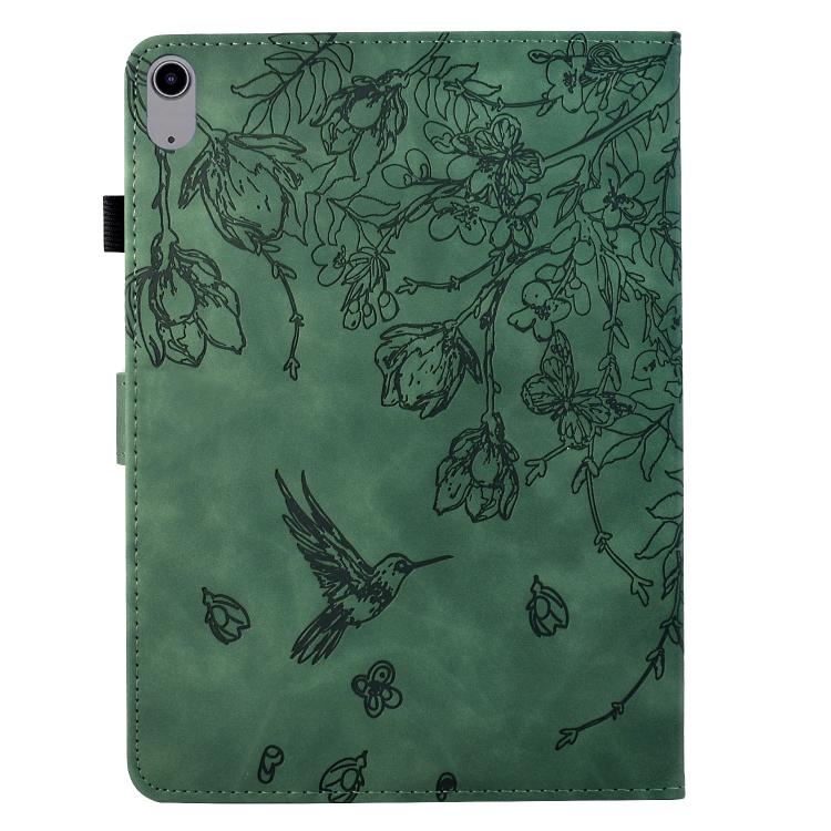 For Samsung Galaxy Tab S11 Flowers and Bird Embossed Smart Leather Tablet Case(Green)