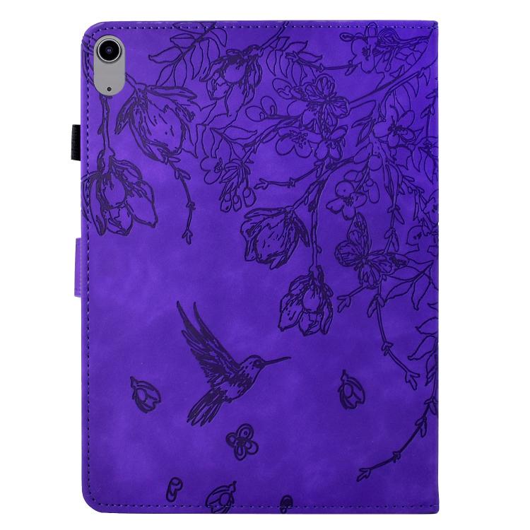 For Samsung Galaxy Tab S11 Flowers and Bird Embossed Smart Leather Tablet Case(Purple)