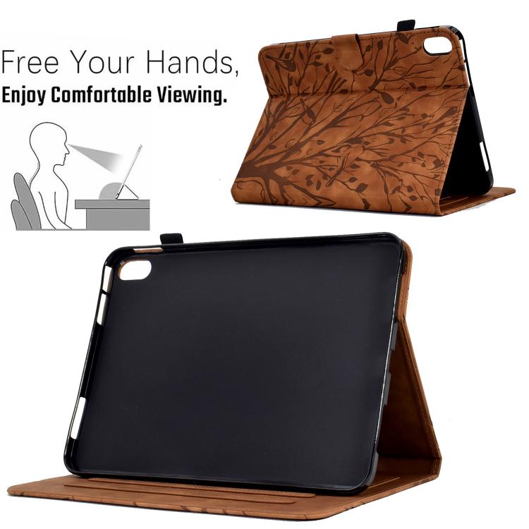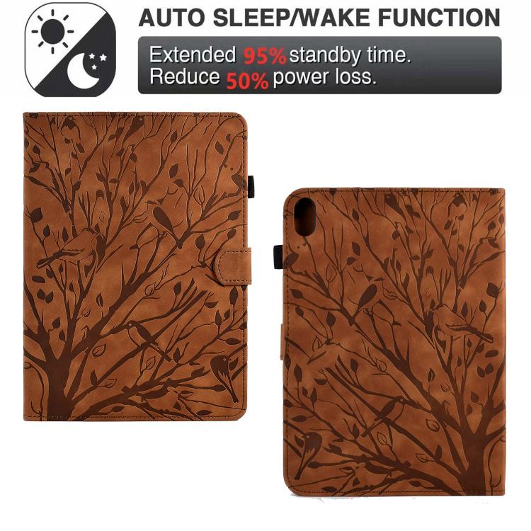 For Samsung Galaxy Tab S11 Fortune Tree Embossed Leather Smart Tablet Case(Brown)