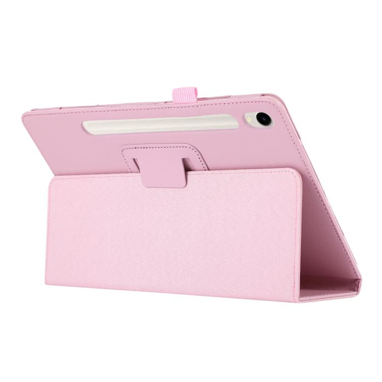 For Samsung Galaxy Tab S11 Litchi Texture Leather Tablet Case with Holder(Rose Red)