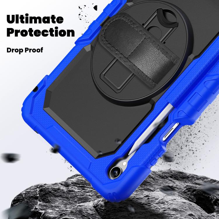 For Samsung Galaxy Tab S11 Lucky Wheel Grip Silicone Hybrid PC Tablet Case with Shoulder Strap(Blue)