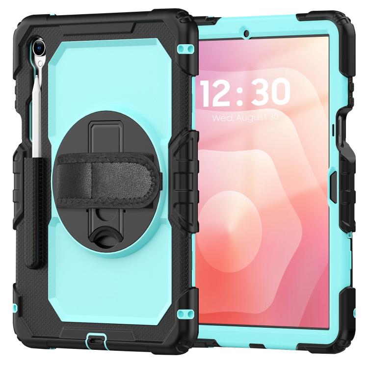 For Samsung Galaxy Tab S11 Lucky Wheel Grip Silicone Hybrid PC Tablet Case with Shoulder Strap(Light Blue PC)