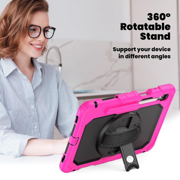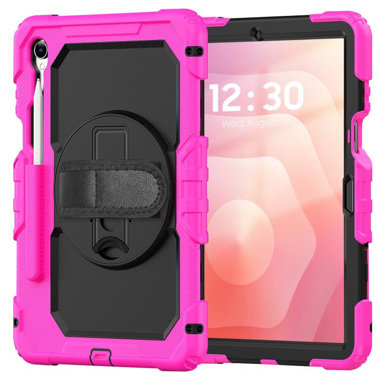 For Samsung Galaxy Tab S11 Lucky Wheel Grip Silicone Hybrid PC Tablet Case with Shoulder Strap(Rose Red)