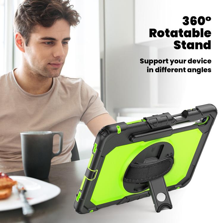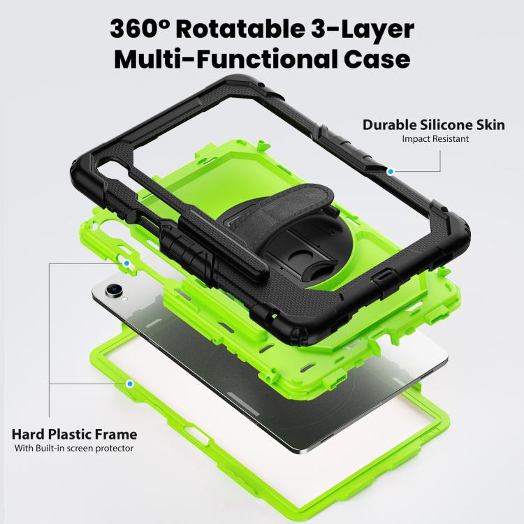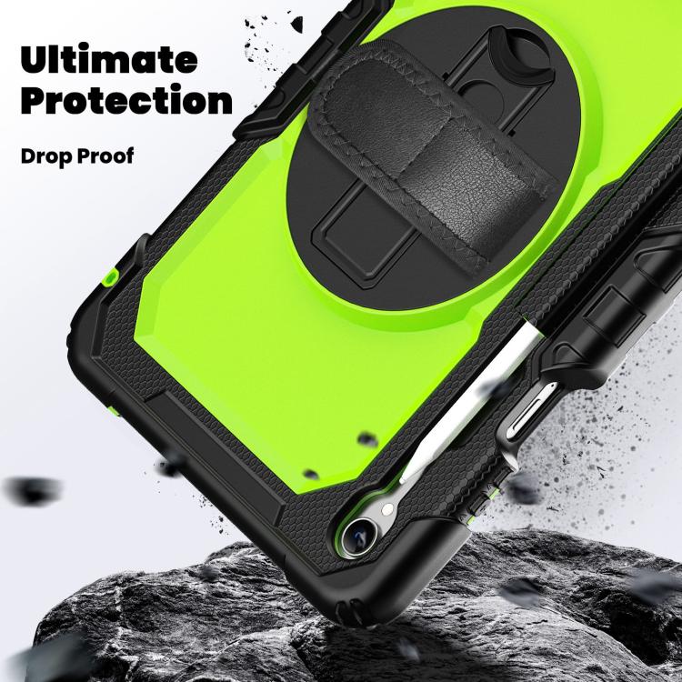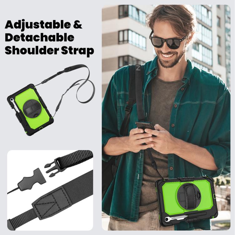 For Samsung Galaxy Tab S11 Lucky Wheel Grip Silicone Hybrid PC Tablet Case with Shoulder Strap(Yellow Green PC)