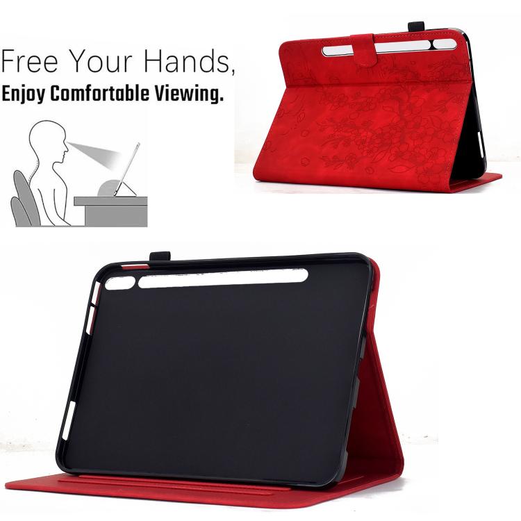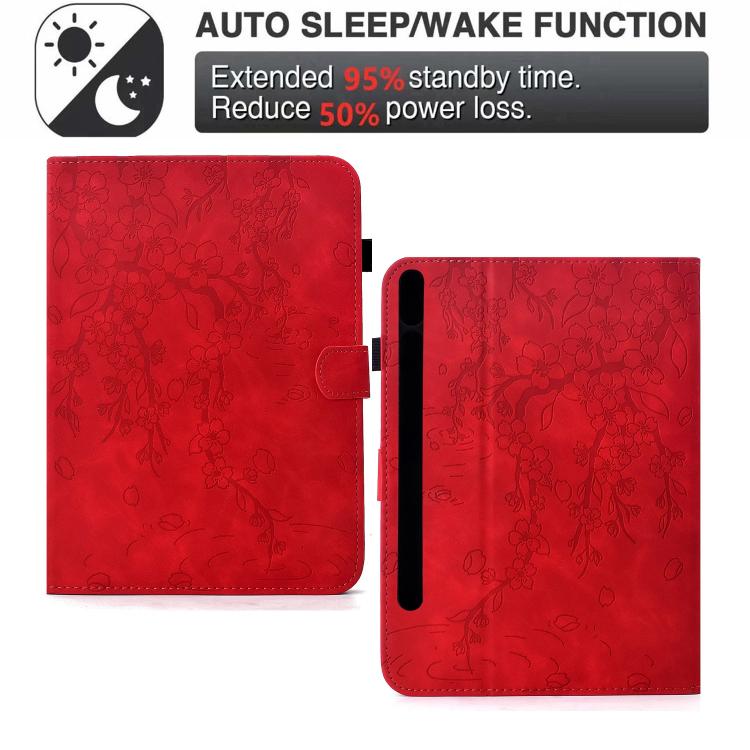For Samsung Galaxy Tab S11 Plum Blossom Embossed Smart Leather Tablet Case(Red)