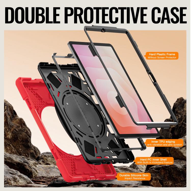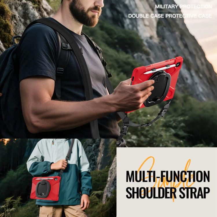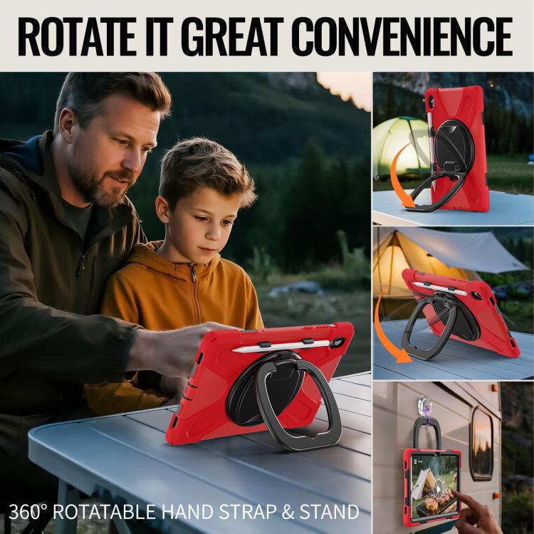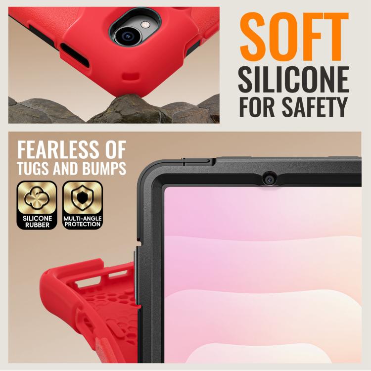 For Samsung Galaxy Tab S11 Silicone Hybrid PC Tablet Case with Holder & Shoulder Strap(Red)