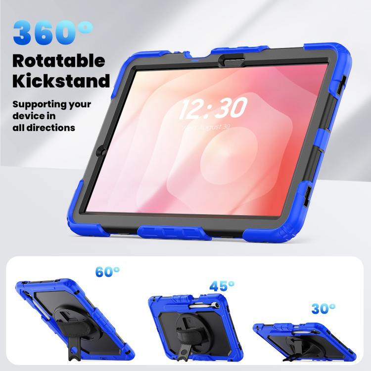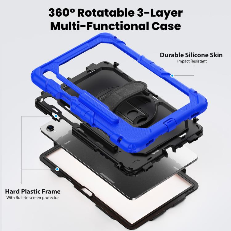 For Samsung Galaxy Tab S11 Silicone Hybrid PC Tablet Case with Shoulder Strap(Blue)