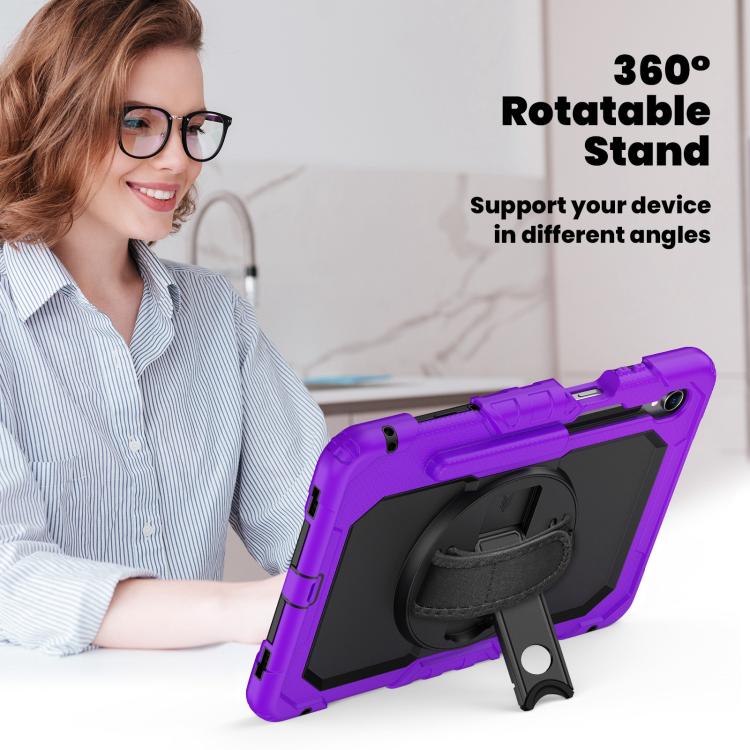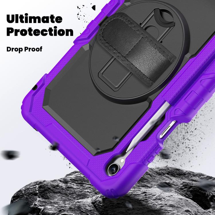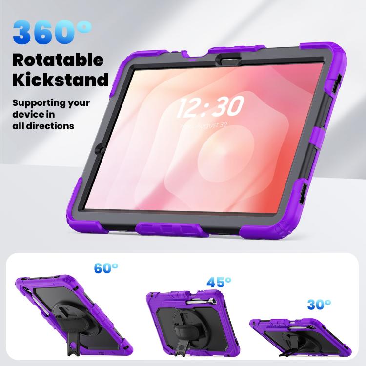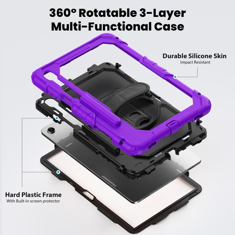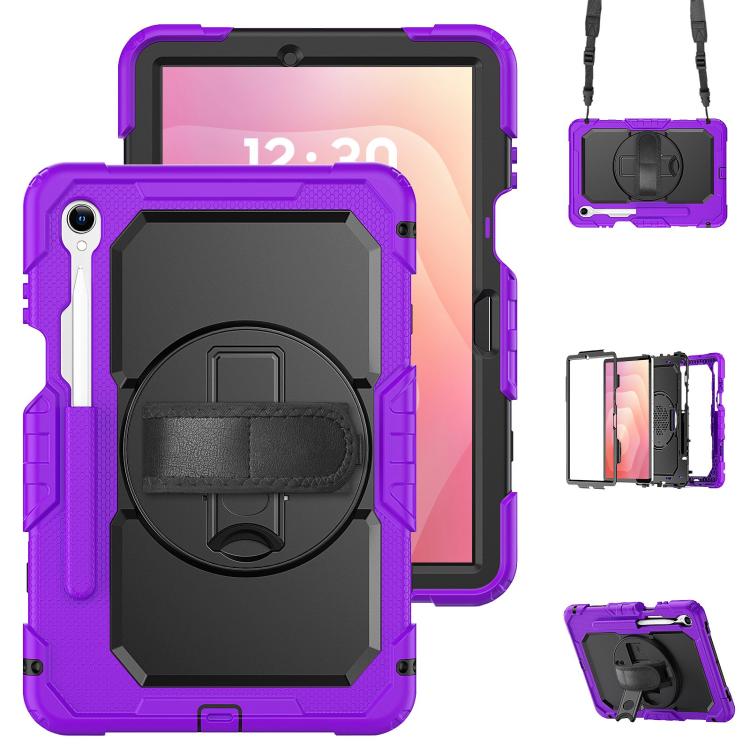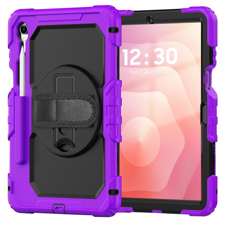 For Samsung Galaxy Tab S11 Silicone Hybrid PC Tablet Case with Shoulder Strap(Purple)