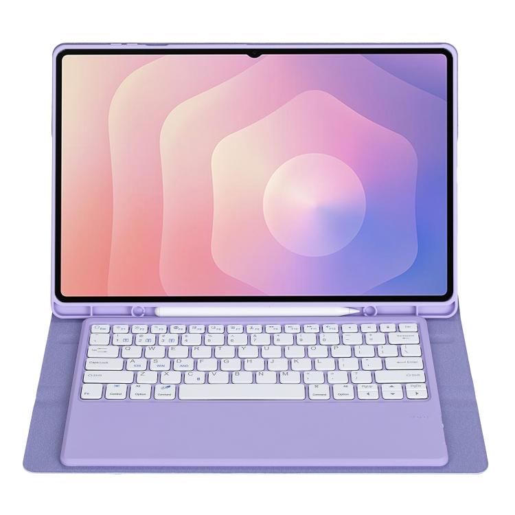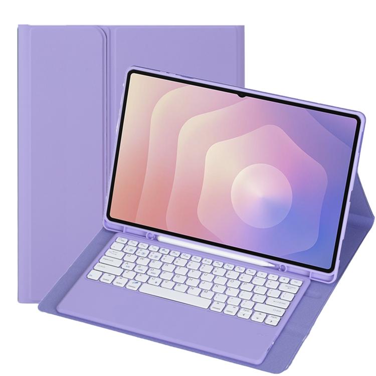 For Samsung Galaxy Tab S11 Ultra Candy Color TPU Bluetooth Keyboard Leather Tablet Case with Pen Holder(Dark Purple)