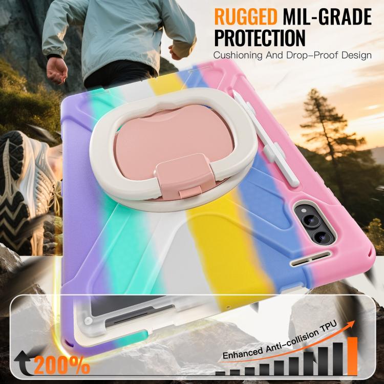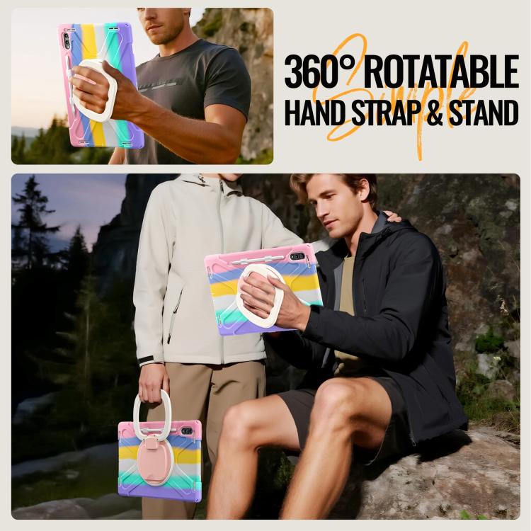 For Samsung Galaxy Tab S11 Ultra Silicone Hybrid PC Tablet Case with Holder & Shoulder Strap(Colorful Pink)