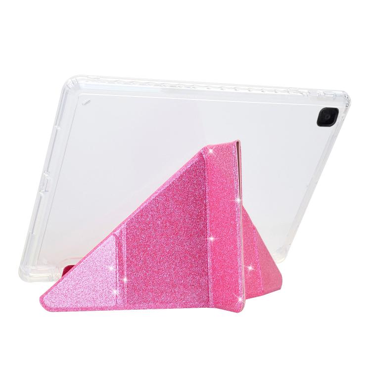 For Samsung Galaxy Tab S6 Lite 2024 Y-Fold Clear Acrylic Glitter Smart Leather Tablet Case(Pink)