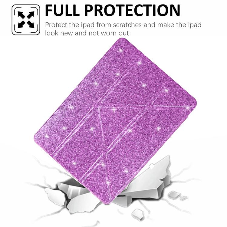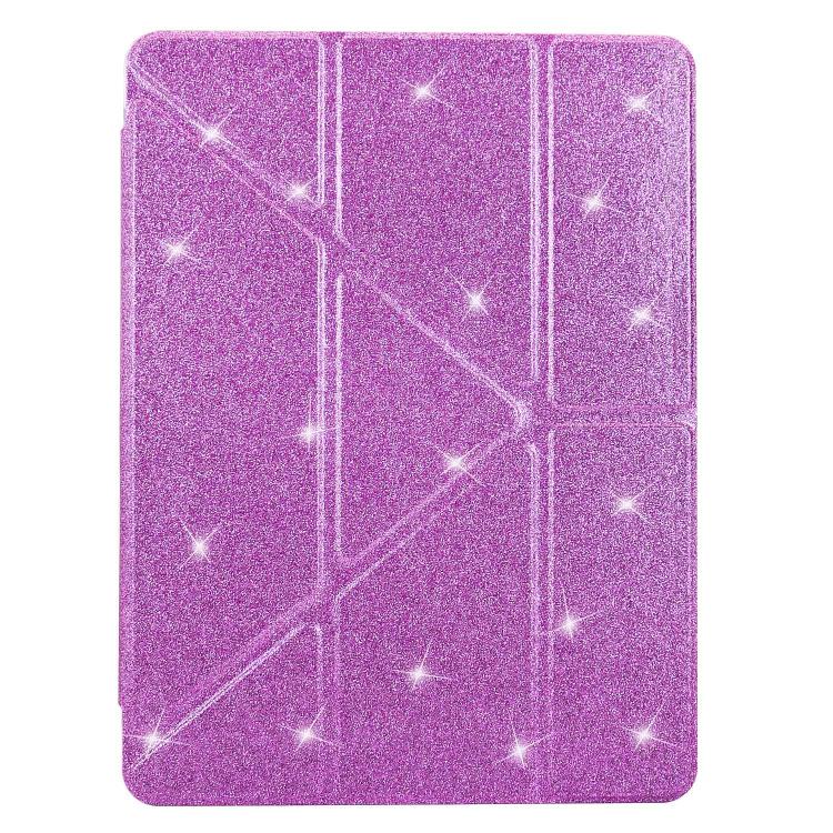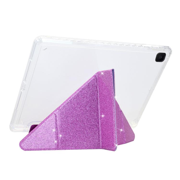 For Samsung Galaxy Tab S6 Lite 2024 Y-Fold Clear Acrylic Glitter Smart Leather Tablet Case(Purple)