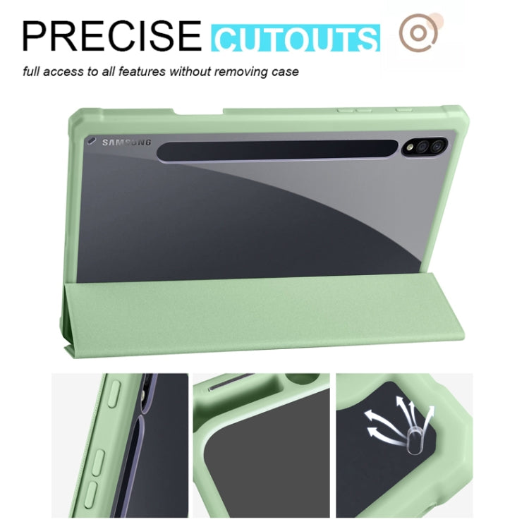 For Samsung Galaxy Tab S7+ Acrylic 3-folding Smart Leather Tablet Case(Green)