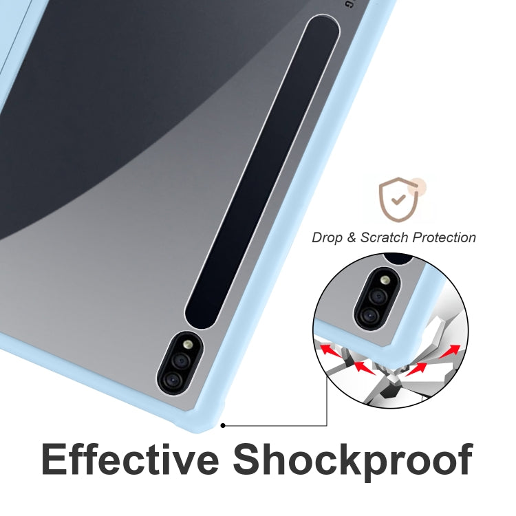For Samsung Galaxy Tab S7+ Acrylic 3-folding Smart Leather Tablet Case(Ice Blue)