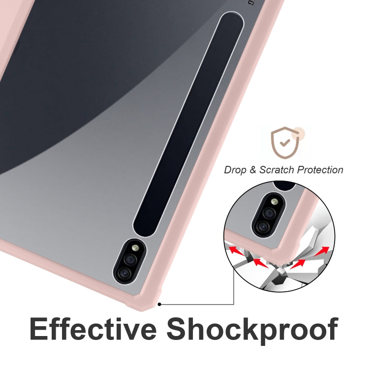 For Samsung Galaxy Tab S7+ Acrylic 3-folding Smart Leather Tablet Case(Ice Pink)