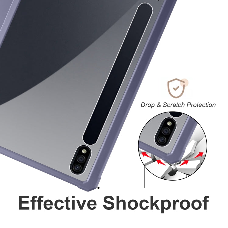 For Samsung Galaxy Tab S7+ Acrylic 3-folding Smart Leather Tablet Case(Purple)