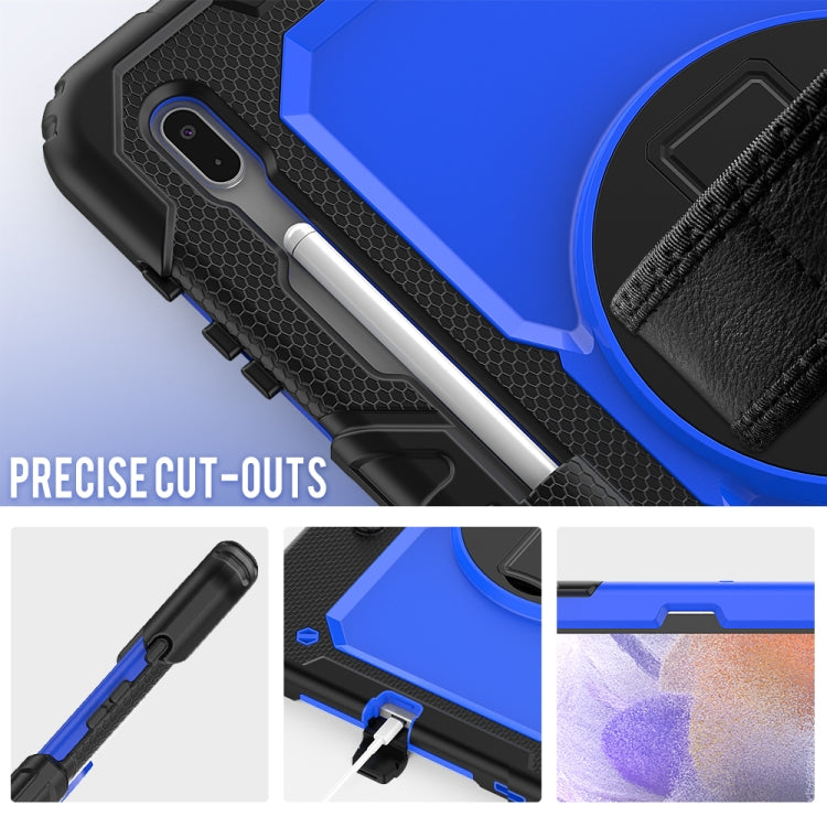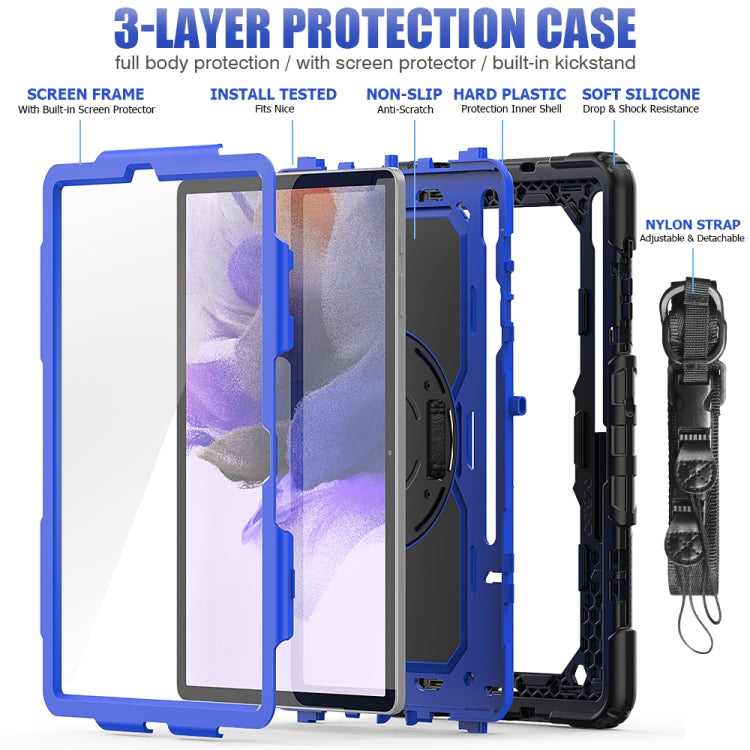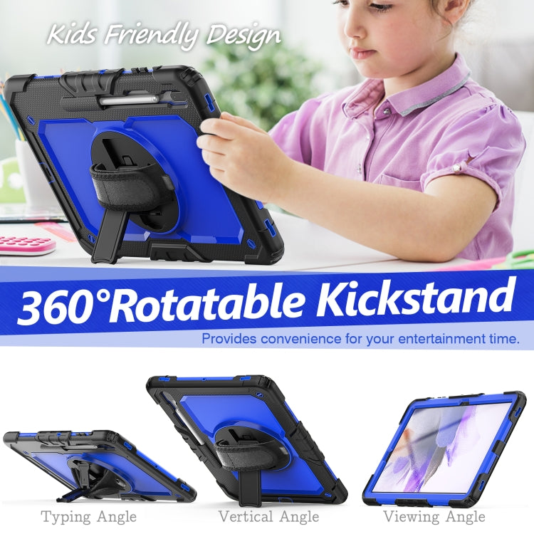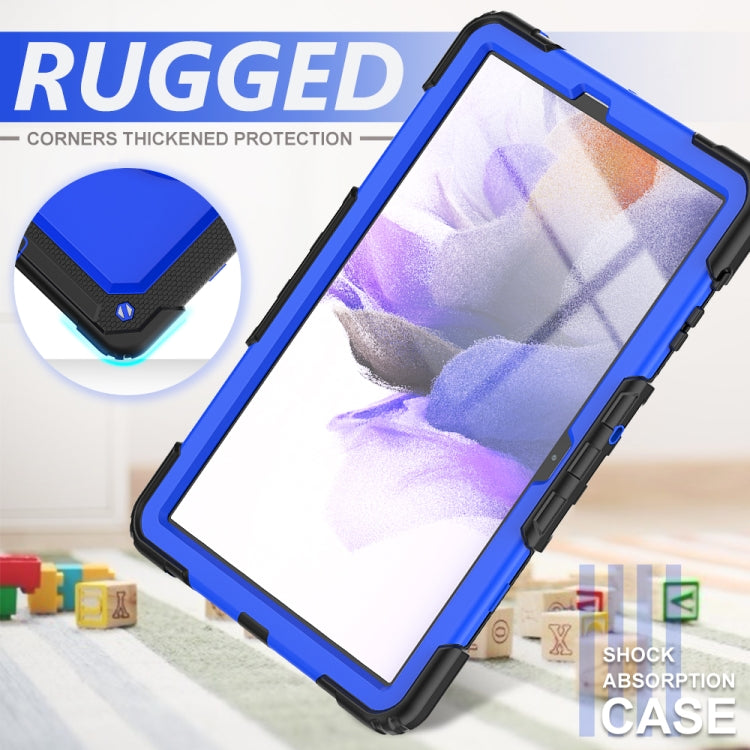 For Samsung Galaxy Tab S7 FE 12.4 inch 2021 SM-T730 / SM-T736B Shockproof Colorful Silicone + PC Protective Case with Holder & Shoulder Strap & Hand Strap & Pen Slot(Blue PC+Black)