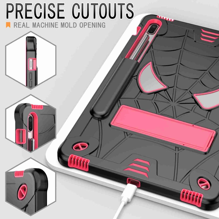 For Samsung Galaxy Tab S7 FE / S7+ / S8+ Spider Texture Silicone Hybrid PC Tablet Case with Shoulder Strap(Black + Rose Red)