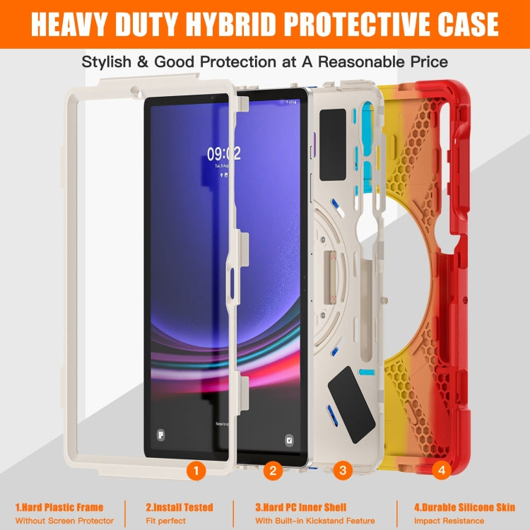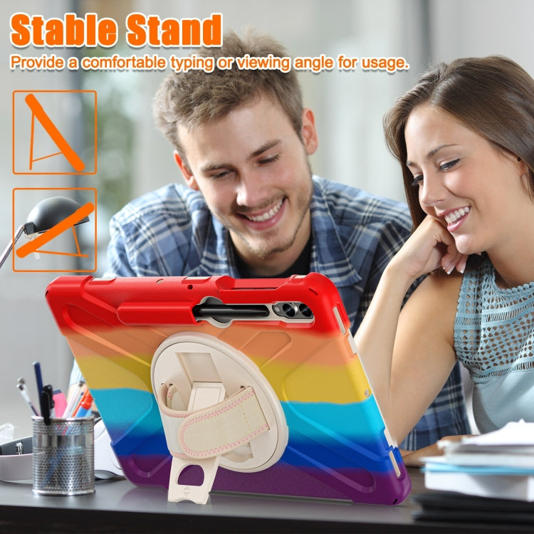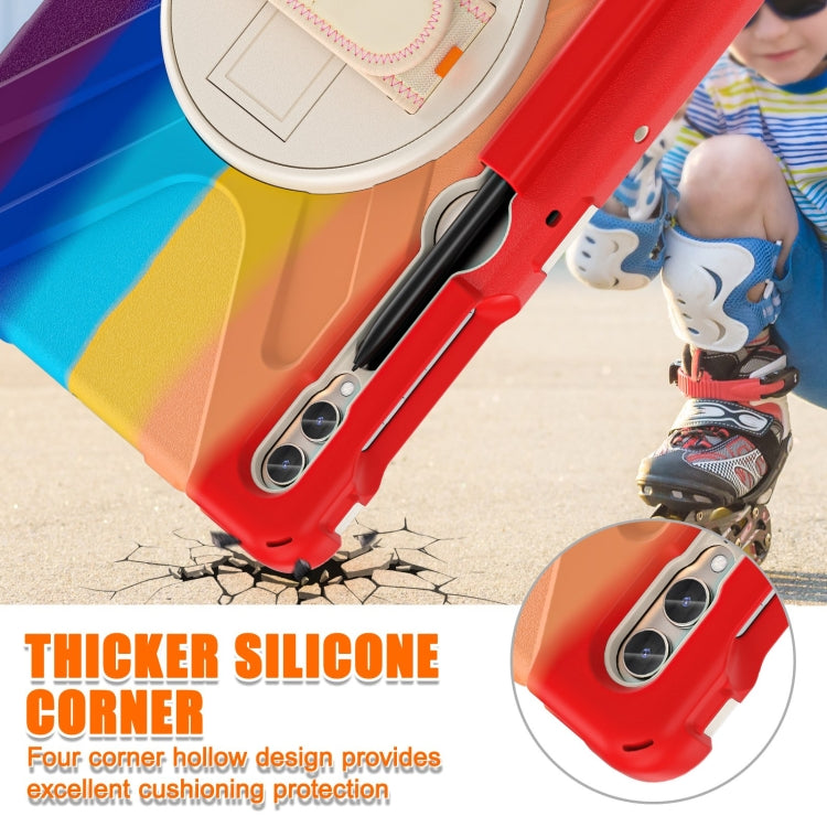 For Samsung Galaxy Tab S7 FE T730 / S7+ / S9+ /S8+ Silicone + PC Protective Case with Holder & Shoulder Strap(Colorful Red)
