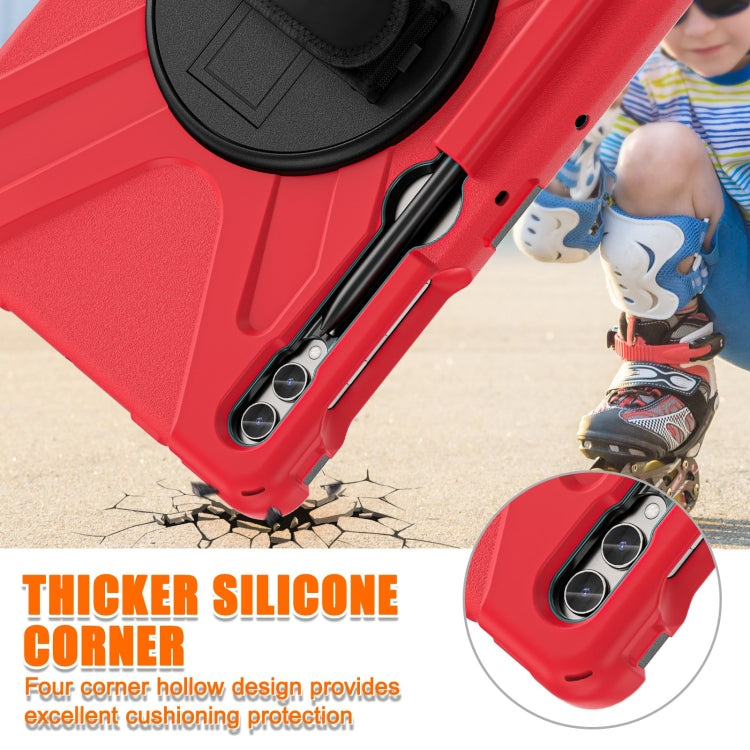 For Samsung Galaxy Tab S7 FE T730 / S7+ / S9+ /S8+ Silicone + PC Protective Case with Holder & Shoulder Strap(Red)
