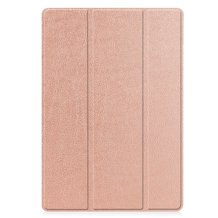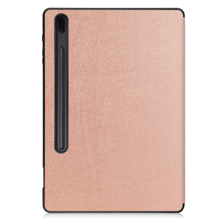 For Samsung Galaxy Tab S7 Lite T730 / T735 / Tab S7 FE T736 Custer Pattern Pure Color TPU Smart Tablet Holster with Sleep Function & 3-Fold Holder & Pen Slot(Rose Gold)