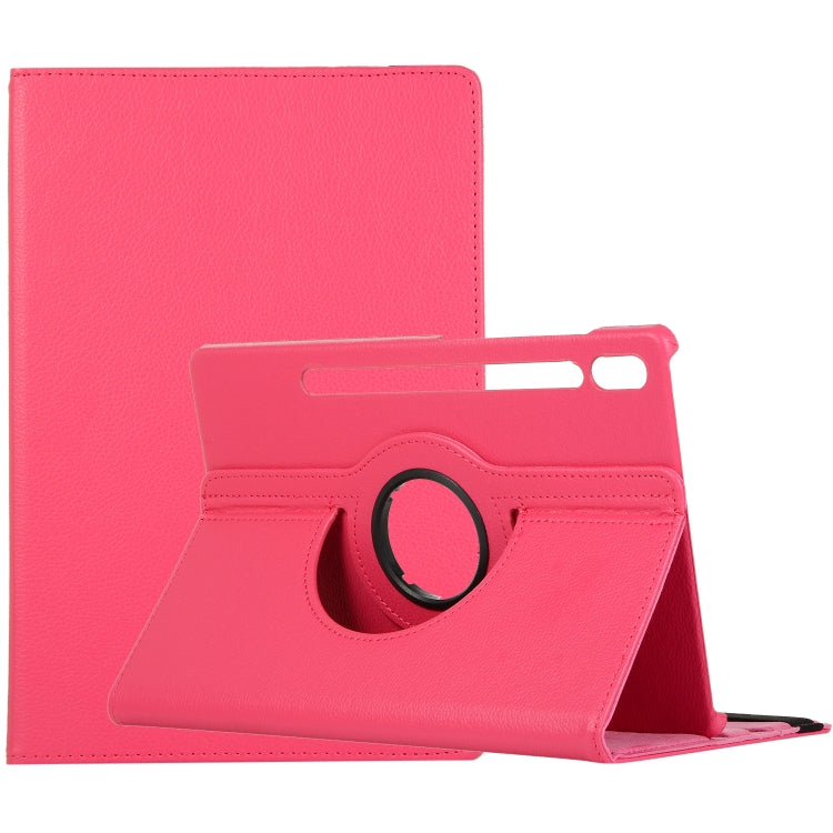 For Samsung Galaxy Tab S7 T870 2020 / Tab S8 Litchi Texture Horizontal Flip 360 Degrees Rotation Leather Case with Holder(Rose Red)