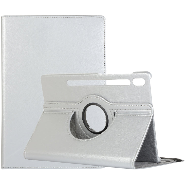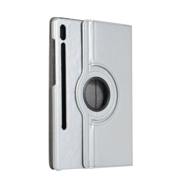 For Samsung Galaxy Tab S7 T870 2020 / Tab S8 Litchi Texture Horizontal Flip 360 Degrees Rotation Leather Case with Holder(Silver)