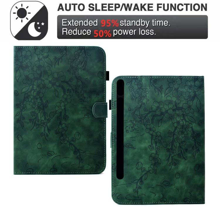 For Samsung Galaxy Tab S8 / S7 Plum Blossom Embossed Smart Leather Tablet Case(Green)